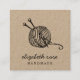 Cartões de visitas de kraft marrom russos para seus negócios feitos à mão, artesanais ou artesanatos apresentam duas linhas de texto personalizado na frente, em caracteres manuscritos de blocos e caracteres de script, com uma ilustração de uma bola de fio com duas agulhas de tricô. Adicione cinco linhas de texto personalizado ao lado inverso em fontes correspondentes. Inclui três ícones de mídia social e um campo para seu nome de usuário.
