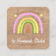 Share your craft. I believe almost every maker started their sharing in response to family and friends saying, "I would love to have one of those!" Don't forget that smile and warming feeling you got when they held it in their hands. Happiness truly is homemade! Now you want to share what you make with the world. Share the love with these delightful 'Happiness is Homemade' business cards. The warm and rustic folk art aesthetic, complete with a colorful rainbow motif, is perfect for your artisan business, whether you're a potter, knitter, bakers or amateur candle maker. The unique square shape and quality cardstock options give a premium feel, while the easy-to-use template allows you to add your own name, contact info. Make a lasting impression and let your passion shine through to everyone! Please note: This design is a flat-printed image and does not contain actual fabric, wood, or physical texture.