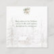 Este design apresenta uma ilustração aquarela da árvore de Natal com baubles e cones de pinho no pote do estilo vintage. Árvore de Natal enfeitada com confete ouro esverdeado. No verso, há uma imagem delicada de árvores de abetos e de cabana de madeira.