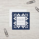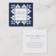 Cartões de visitas quadrados de chic apresentam um padrão decorativo inspirado em marroquino na frente, em azul e branco clássicos, enquadrando seu nome e nome comercial ou ocupação no centro. Adicione seus detalhes de contato do cheio ao lado inverso. Uma escolha encantadora para qualquer profissão; amostra mostrada para as profissões de design de interiores.