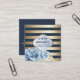 Cartão De Visita Quadrado Bandas Douradas Florais Elegantes em azul-da-noite