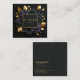 Cartão De Visita Quadrado Black and Gold Floral Geometric Hydrangea