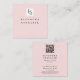 Cartão De Visita Quadrado Blush Pink Script Logo QR Code Lashes