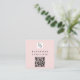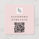 Cartão De Visita Quadrado Blush Pink Script Logo QR Code Lashes