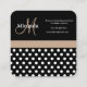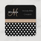 Cartão De Visita Quadrado Bolinhas branca preta do monograma bege