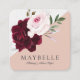 Cartão De Visita Quadrado Borgonha Elegante e Mármore Branco Floral
