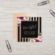 Cartão De Visita Quadrado Cabelo Floral Rosa Dourado Quadrado Cartão de visi