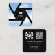 Modern unique and creative style with spaces for monogram, QR code and logo that can be used or replaced with desired one. Geometric style in shape of camera lens.