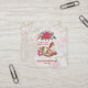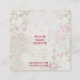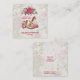 Cartões de visita quadrados. O fundo é uma colagem em estilo vintage com uma imagem desbotada de rosas cor-de-rosa, folhas verdes e escrita francesa. Sobreposta no topo está uma linda bouquet de Natal de poinsettia e um cavalo de balanço vitoriano cercado por peônias cor-de-rosa e ramos floridos. O texto diz Saudações de Natal.