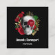 Cartão De Visita Quadrado Caveira do gótico com Flores Vermelhas e Folhas Do
