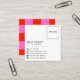 Modelo de cartão de negócios profissional e criativo apresenta o seu logotipo e informações de contato. Padrão simples e ousado de tabuleiro cor-de-rosa e de damasco vermelho na parte traseira do cartão e fundo branco clássico (a cor pode ser alterada para o que você quiser) com texto preto na frente. Alterar, mover e redimensionar elementos com a ferramenta de personalização. Para obter materiais de marketing adicionais correspondentes, envie-me um e-mail em marisupaperco@gmail.com ou envie-me uma mensagem através do bate-papo Zazzle. Design original de Marisu Valencia.