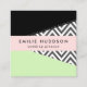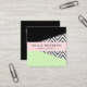 Cartões de visitas elegantes, na moda e sofisticados com padrão zigzag (chevron) em cinzas e cor branca com manchas de cor preta e menta. Design moderno e moderno, perfeito para amantes de ziguezague.