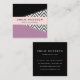 Cartões de visitas elegantes, na moda e sofisticados com padrão zigzag (chevron) em cinzas e cor branca com manchas roxas e pretas de cor. Design moderno e moderno, perfeito para amantes de ziguezague.