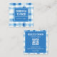 Cartão De Visita Quadrado Classic Blue and White Gingham Checkered , QR Code