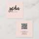 Cartão De Visita Quadrado Código QR Caligrafia de Pincel Girly Pink QR