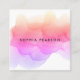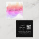 Cartões de visitas de aquarela em um formato quadrado exclusivo apresentam seu nome ou nome de empresa em camadas em uma ilustração florescente de tinta em tons coloridos de coral rosa, violeta e ouro. Adicione as informações de contato do cheio à parte traseira em branco a preto, com um código QR personalizável.