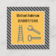 Um cartão de visita personalizável para um homem de mão, em cores amarelas e escuras da cinza. A frente do cartão inclui o seu nome, a palavra "Handyman" e, em seguida, alguns ícones de uma escada, panner e mallet. O verso pode ser personalizado para indicar os serviços oferecidos e os detalhes de contato. Há também um código QR, para os clientes potenciais pesquisarem, para que você aponte para o seu próprio URL do site. Uma escolha na moda para promover sua empresa.