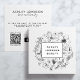Cartão De Visita Quadrado Código QR preto e branco Website Botânico moderno