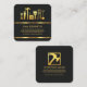 Cartão De Visita Quadrado Construção de Linhas Douradas Mínimas