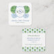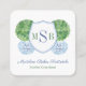 Design de cartão de visita monograma preppy com uma bola de topiária de buxo em um vaso de gengibre de aquarela azul e branco. Na frente deste está uma forma de brasão com espaço para um monograma de três letras. Os elementos de aquarela foram originalmente pintados à mão por mim em aquarelas sobre papel 100% algodão antes de serem digitalizados e organizados/estilizados digitalmente (a forma do brasão é de outro artista). Você pode alterar todas as cores e fontes do texto (clique para personalizar ainda mais abaixo da área de personalização de texto - isso o levará à ferramenta de design).