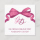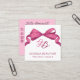 Cartão De Visita Quadrado Coquette Fuchsia Bow Monogram Beauty QR Code