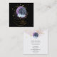 Sentado na lua de aquarela é um BUQUÊ de flores azuis, penas e cristais. Há um esboço falso de GOLD FOIL de uma mão debaixo da lua lavanda roxa.Este design Celestial Místico Místico e Mesmerizante Cosmos Cosmos Cosmic Dourados Stars Watercolor é popular nos cartões de visitas.
