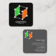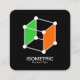 Cartão De Visita Quadrado Cubo Isométrico - Branco, Verde e Laranja em Preto