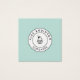 Um cartão de visita moderno retrô com um logotipo circular preto e branco na frente, sobre um fundo azul pastel macio. A cor de fundo pode ser alterada para qualquer coisa que corresponda à sua empresa. Isso seria perfeito para qualquer um que assar cupcakes, tem um compro de bolo ou uma padaria de bolo de casamento.