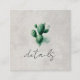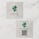 Cartão De Visita Quadrado Detalhes do Casamento de Cacto Verde em Aquarela