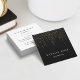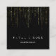 Design elegante e simples em um formato quadrado único apresenta letras brancas clássicas em um plano de fundo preto rico, com fios verticais de linhas de folhas falsas de folha de ouro em cascata a partir do topo. Personalize a frente com seu nome e nome comercial ou ocupação e adicione suas informações de contato de cheio ao lado inverso. Uma bela escolha para qualquer ocupação; exemplo mostrado para estéticos.