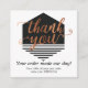 Adicione um obrigado ou um código de promocional a qualquer ordem que você enviar. Personalizado com seu logotipo, informações da empresa e contas sociais.