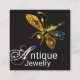Cartão De Visita Quadrado DRAGONFLY JOIA EM OURO ANTIGO Monograma, Preto