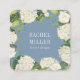 Cartão De Visita Quadrado Dusty Blue & White Hydrangea Wreath