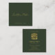 Cartão De Visita Quadrado Elegant Green Handwritten Script Gold Text QR Code