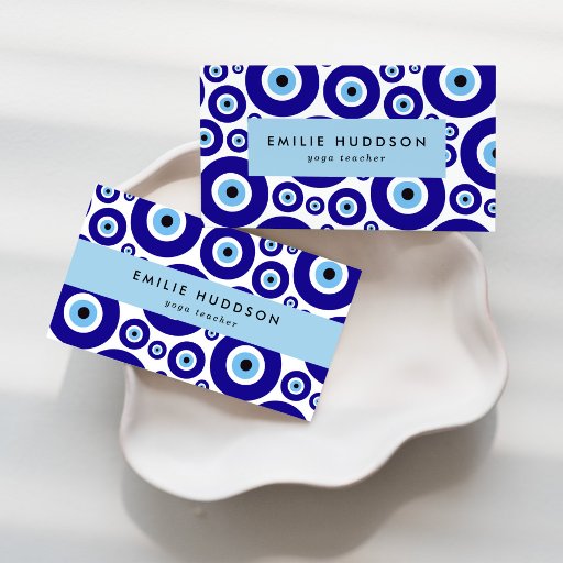 Elegant, stylish and sophisticated business cards with evil eye pattern. Modern and trendy design, perfect for yoga teachers, yoga studios, energy healers and tarot readers.