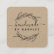 Cartão De Visita Quadrado Folha de Louro Rústico Letra Feita à Mão