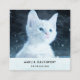 Cartões de visita com uma fotografia adorável de um gatinho branco de pelo curto com olhos azuis brilhantes. Olhando para longe.