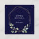 Este eucalipto verde simples da aguarela da característica minimalista e na moda dos cartões de visitas sae e folha em um quadro center geométrico do ouro do falso e em uma obscuridade, fundo dos azuis marinhos.