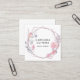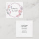 Cartão de visita quadrada apresenta uma peça central geométrica com delicadas flores rosa, desenhadas à mão e embebidas em aquarela.