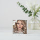 Cartão De Visita Quadrado Girly Script QR Code Photo Square Blush Pink