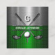 Cartão De Visita Quadrado Golf Monograma Verde Metálico e Prata