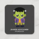 Cartões de visitas com uma imagem divertida de Halloween apresentando um monstro Frankenstein verde.