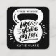Espalhe a palavra e promova a sua marca malhação e presença nas mídias sociais com a nossa cartão de visita de mídia social moderna e ousada. O design apresenta um design tipográfico de script branco ousado, "Like Share After" (Como compartilhar o acompanhamento), incorporado a um design de peso de sino branco, adicione seu nome e azulejo. O verso da placa apresenta o ícone kettlebell design com nome, título, informações de contato e identificador social. Design original e layout por Moodthology.