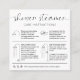 Cartões modernos de Navio a vapor com fonte de script elegante e ícones de cuidado. Esta placa mínima de instruções de atendimento a rebordos de chá preto e branco inclui informações passo a passo sobre como usar e armazenar melhor bombas de chá, bem como uma nota de agradecimento e seu logotipo na parte traseira. Certifique-se de que os seus clientes continuem a utilizar corretamente os bares de névoa de chá com estas placas de assistência, o que é perfeito para adicionar às suas encomendas de navios a vapor de chás.