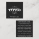 Forneça aos seus clientes instruções de pós-tratamento de tatuagem profissional e claras, usando este design de cartão de visita elegante e informativo. Apresentando um fundo preto ou verde clássico com texto branco em negrito, a frente do cartão exibe orgulhosamente o nome do seu compro de tatuagem em uma fonte de estilo antigo, garantindo o reconhecimento de marcas e uma estética de eterno. A parte traseira da placa inclui instruções de pós-tratamento passo a passo fáceis de ler para orientar seus clientes a cuidarem de sua nova tatuagem. De manter o curativo a evitar exposição solar, o layout conciso garante que todas as dicas essenciais sejam cobertas para proteger a tinta do cliente e promover a cura. Perfeito para entregar depois de cada sessão de tatuagem, essas placas são uma adição prática aos seus esforços de marca e uma maneira criteriosa de melhorar a satisfação do cliente. Projetado para profissionais de tatuagem, este cartão de pós-assistência combina estilo e função, fazer que ele é obrigatório para seu compro.