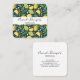 Cartão De Visita Quadrado Limão amarelo e padrão de Comida de Fruta verde