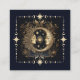 Um simples sol elegante, lua, estrelas, cartão de visita místico para as artes celestiais e holísticas. Aquarela com efeito de folha de ouro branco falso. Adequado para astrologia, yoga, leitor de tarô e muito mais. Estilo minimalista e moderno.