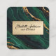 Cartão De Visita Quadrado Marinho Verde e Dourado Glitter Marble Agate Moder