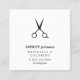 Minimalist fully customizable business card template with black scissors icon. Minimal clean design, perfect for hair salon.