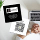 This sleek square business card features a solid black background, space for your custom logo, and a scannable QR code that links instantly to your website, portfolio, contact card, or social media. The minimalist layout creates a high-end, contemporary look while keeping your information clear and accessible.